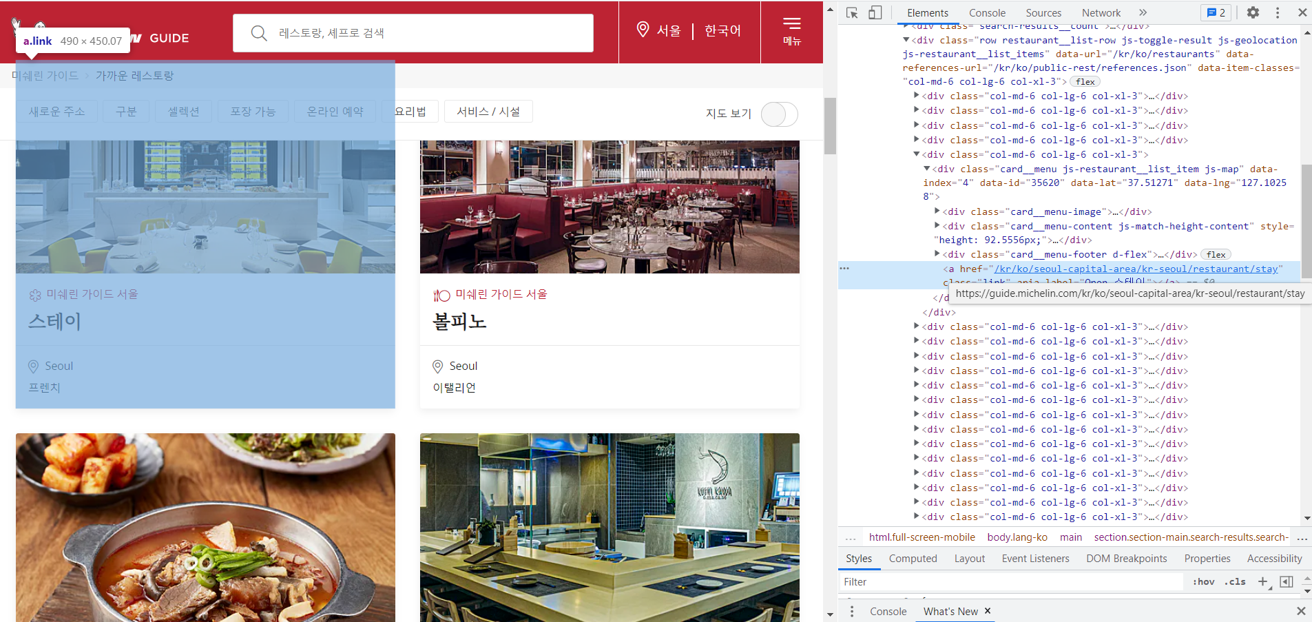 데이터 수집 과정에서 미쉐린 레스토랑에 등록된 레스토랑 정보를 가져오게 되었다.
