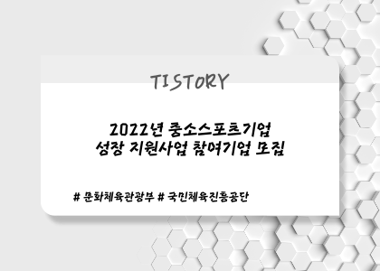 오늘은 '2021년 12월 22일 ~ 2022년 1월 21일' 모집 기간인 '2022년 중소스포츠기업 성장 지원사업 참여기업 모집 공고'를 알아보겠습니다.