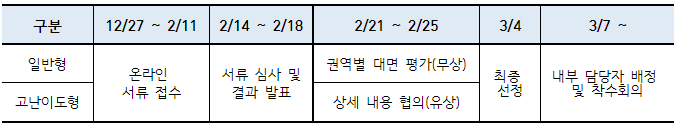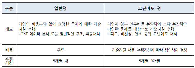 | 특이사항 | 일반형 (무료, 5개월), 고난이도형(협의, 5~8개월)로 지원 프로그램 2원화 운영 |