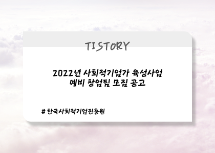 오늘은 '한국사회적기업진흥원'가 주관하는 '2022년 사회적 기업가 육성사업 예비 창업팀 모집 공고'에 대해서 알아봤습니다.