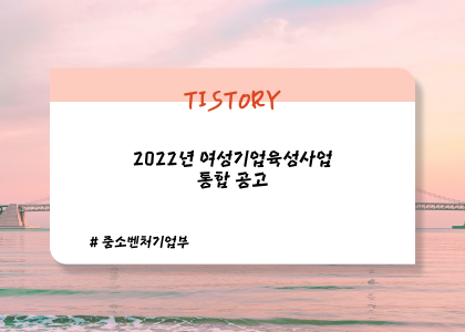 오늘은 '중소벤처기업부'가 주관하는 '2022년 여성기업육성사업 통합 공고'에 대해서 알아봤습니다.