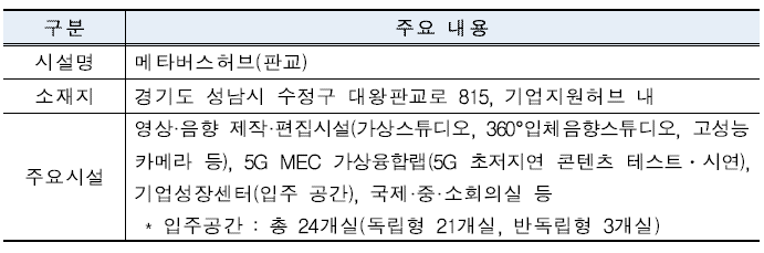 △ 지원사항: 메타버스허브(판교) 입주 지원