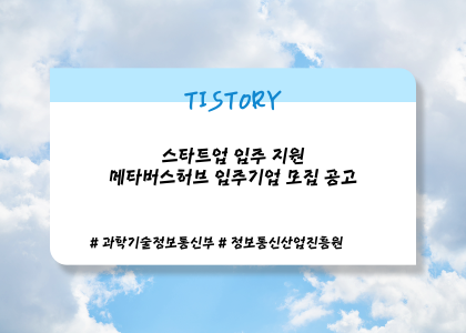 오늘은 '과학기술정보통신부, 정보통신산업진흥원'가 주관하는 '메타버스허브 입주기업 모집 공고'에 대해서 알아봤습니다.