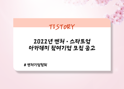 오늘은 '벤처기업협회'에서 주관하는 '2022년 벤처ㆍ스타트업 아카데미 참여기업 모집'에 대해서 알아봤습니다.