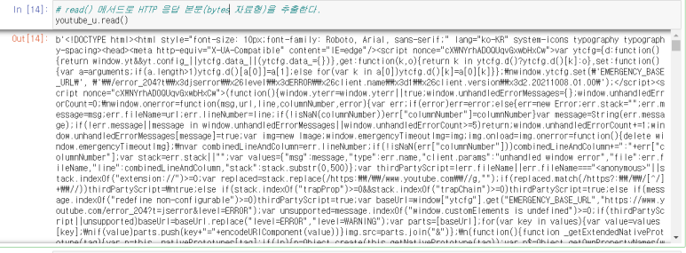 # read() 메서드로 HTTP 응답 본문(bytes 자료형)을 추출한다.