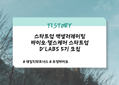 오늘은 '데일리파트너스, 우정바이오'가 주관하는 '바이오·헬스케어 스타트업 D’LABS 5기 모집'에 대해서 알아봤습니다.