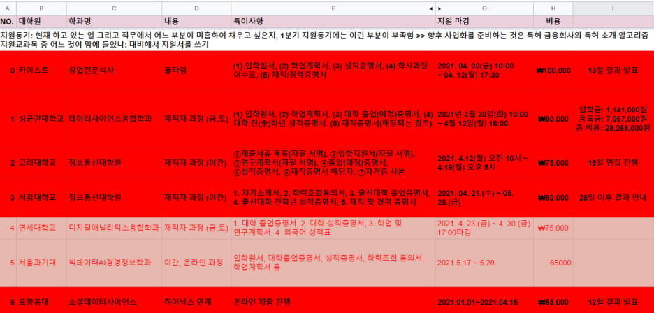 이번에 2022년 상반기 서강대학교 정보통신대학원에 데이터 사이언스 전공에 합격하게 되었습니다.