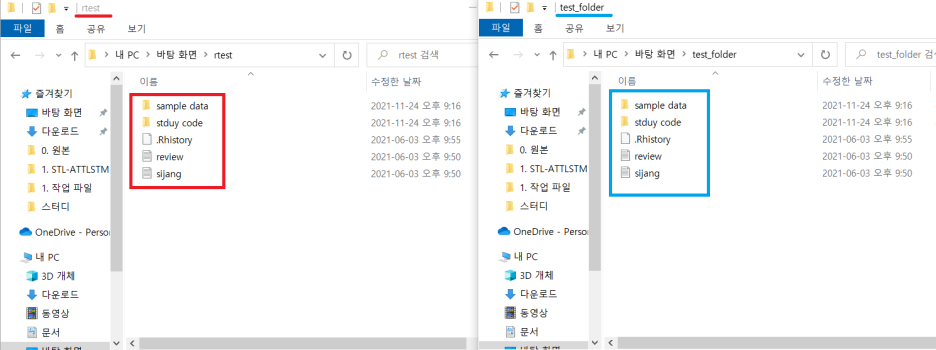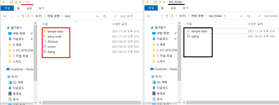 지금부터는 일부 폴더와 파일을 삭제하고, 누락본을 확인하고 해당 누락 폴더와 파일을 저장하는 법을 살펴보겠습니다.