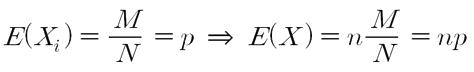 이를 바탕으로초기하 분포의 기댓값은 다음 식으로 나타낼 수 있습니다.