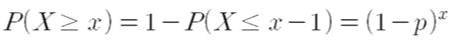 역으로 x+1번째 시행 이후로 성공할 확률 (x 번째까지 실패할 확률)은 전체 확률 1에서 x 번째 시행에 성공할 확률을 빼면 됩니다.