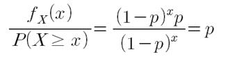 위에서 정리한 내용을 바탕으로 기하 분포의 시행에서 x 번째까지 실패하고, 다음 (x+1) 번째 시행에서 성공할 확률은 독립 시행과 동일하게 성공할 확률 p가 됩니다.