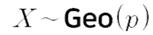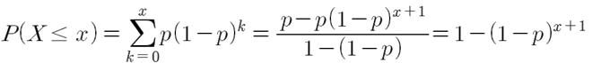 기하 분포에 따라 x 번째 시행에 성공할 확률 (x-1 번째까지 실패할 확률)은 아래와 같으며,