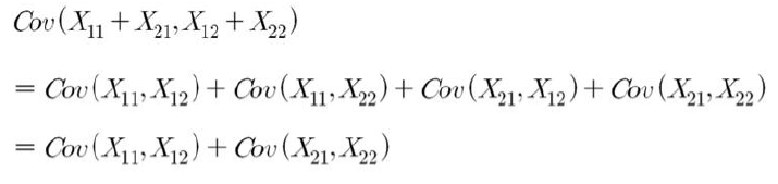 다항 분포의 서로 다른 범주 (i ≠ j)의 시행 결과는 서로 독립이기에, cov(X11, X22)와 cov(X21, X12)는 0이 됩니다.