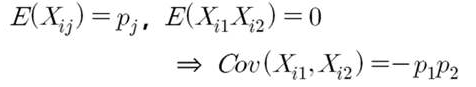다항 분포 확률변수 간의 관계를 공분산을 통해 확인할 수 있습니다.