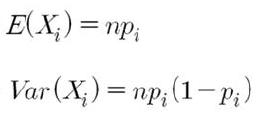 이를 바탕으로 다항분포의 기댓값과 분산은 아래처럼 정의됩니다.