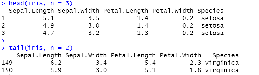확인하고 싶은 데이터의 범위는 함수에서 (n = 숫자) 옵션을 활용하면 된다.