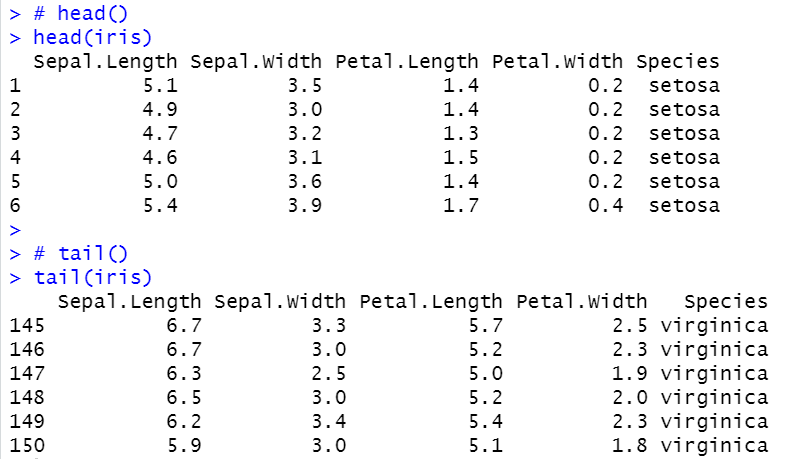 head()의 경우, 데이터의 앞 부분을, tail()의 경우, 데이터의 뒷 부분을 확인할 수 있다.