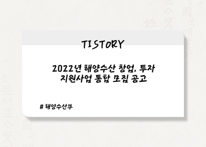 오늘은 '해양수산부'가 주관하는 '2022년 해양수산 창업, 투자 지원사업 통합 모집 공고'에 대해서 알아봤습니다.