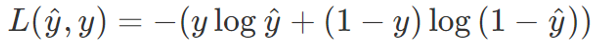 손실 함수는 하나의 입력에 대해 실제값(y)과 예측값(ŷ)의 차이인 오차를 계산하는 함수이고, 이러한 모든 입력에 대한 오차를 계산하는 함수를 비용 함수라고 합니다. 로지스틱 회귀에서 사용하는 손실 함수는 아래와 같습니다.