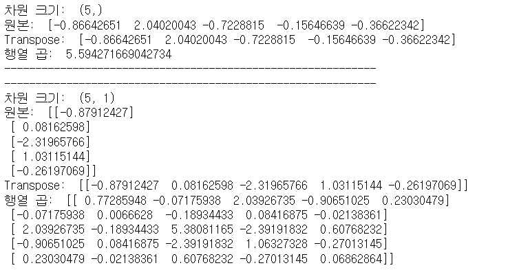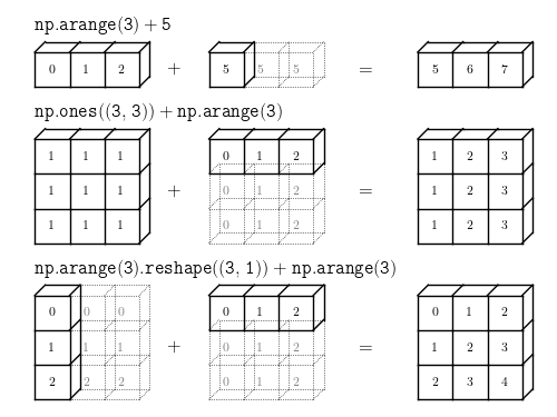 - 두 배열 간의 연산에서 최소한 하나의 배열의 차원이 1이라면(0번 축이든 1번 축이든; 1행이든 1열이든) 가능합니다.