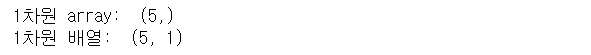 만약에 1차원 array를 만들었다고 하더라도, reshape 함수를 통해 1차원 벡터로 수정할 수 있습니다.