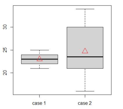 boxplot(boxdata, boxdata_1, names = c('case 1', 'case 2'))