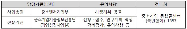 | 주관기관 | 중소벤처기업부, 중소기업기술정보진흥원 |