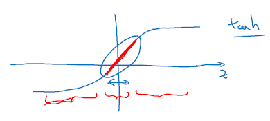 tanh 함수를 사용하면 lambda 값 커지면 비용 함수에 의해 가중치 w는 작아지게 되며, z = w*x + b에 의해 z도 작아지게 됩니다.