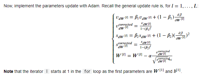 parameters["W"+str(l)] = parameters['W'+str(l)] - learning_rate*grads['dW'+str(l)]