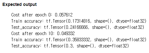 print ("Cost after epoch %i: %f" % (epoch, epoch_cost))
