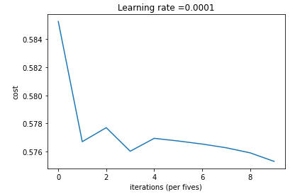 def model(X_train, Y_train, X_test, Y_test, learning_rate = 0.0001,