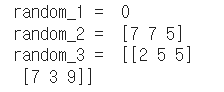random_2 = np.random.randint(3, 10, size = 3) # size (1, 3) 지정