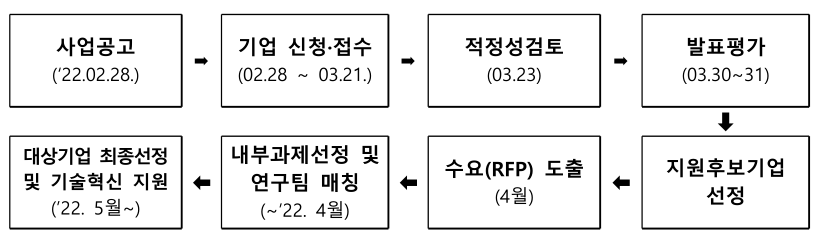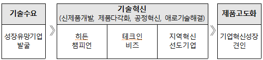 | 특이사항 | 신제품개발, 제품다각화, 공정혁신, 애로기술해결에 맞춰, 3개 지원사업으로 나눠짐 |