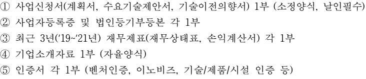 | 지원사항 | 신제품 개발, 제품용도다각화, 애로기술 개발, 사업화 유망 기술 추가 개발 등 지원 |