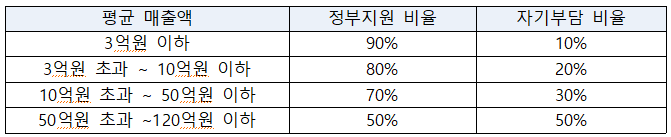 - 평균 매출액 규모에 따라 차등 적용(50 ~ 90%)