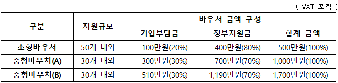※ 바우처 금액은 기업부담금(현금, 소형 20%, 중형 30%)을 포함한 금액임