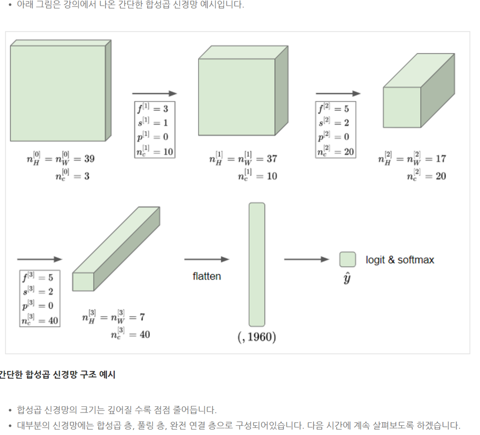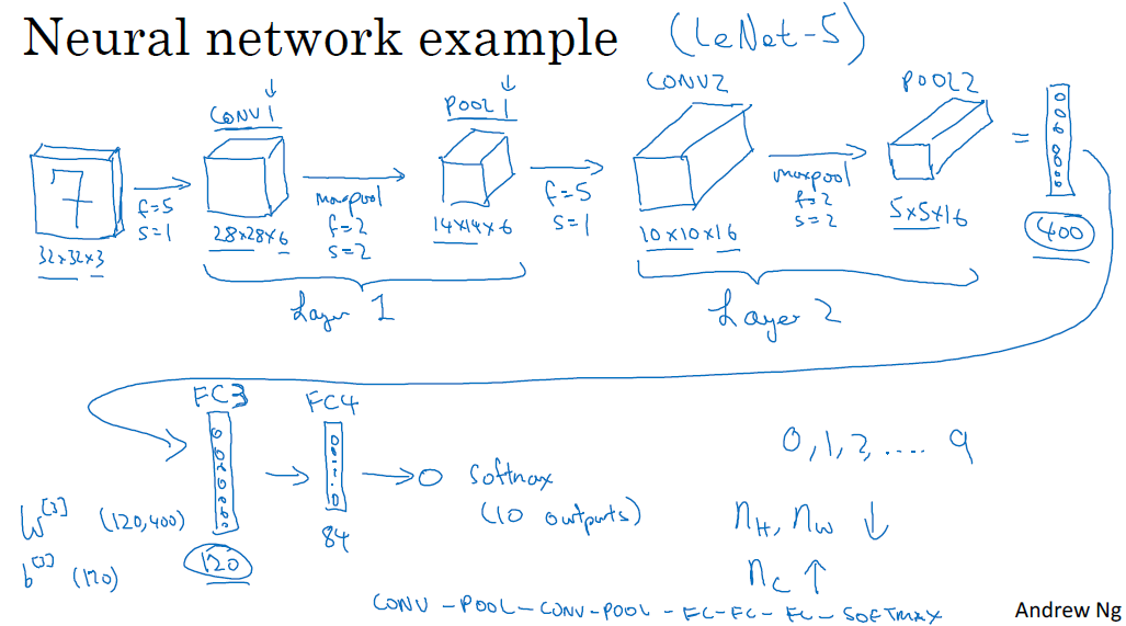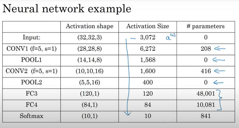 다른 사람들이 사용한 모델, 하이퍼파라미터를 참고하는 것이 많이 도움이 될 것입니다. 신경망이 깊어질수록 nh, nw는 줄어들지만, nc는 커집니다.