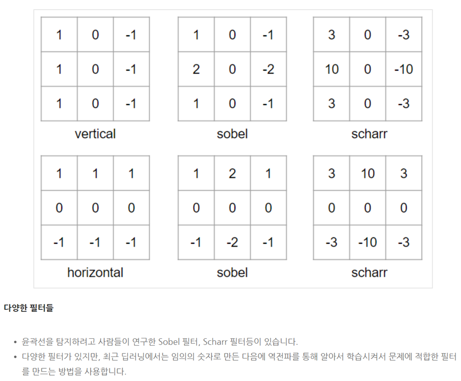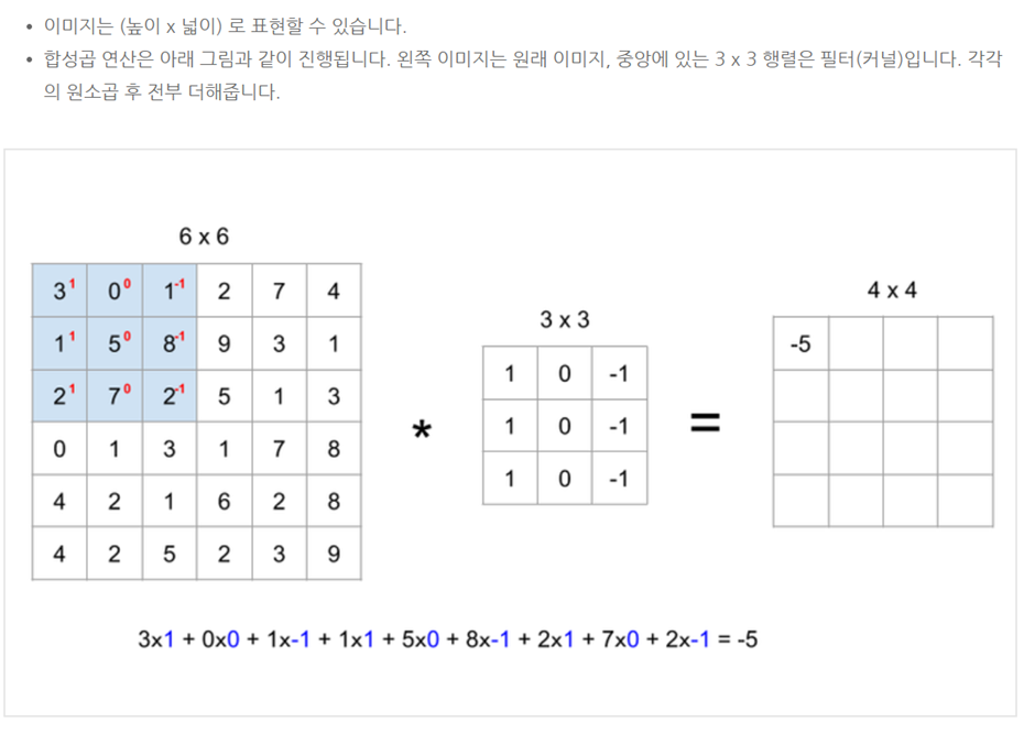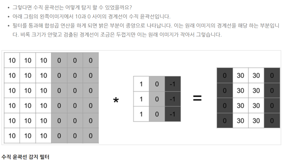 입력 이미지에서 수평선, 수직선을 감지하기 위해 필터를 활용합니다. 수학에서는 *를 CNN 연산을 위한 기호를 활용하며, 파이썬에서는 곱하기 연산으로 사용합니다.