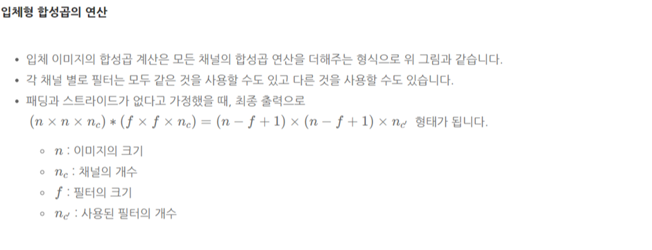 3차원 이상의 volume에서 CNN을 적용하는 방법은 channel(RGB)이 적용되는 것을 제외하면 2차원 이미지와 동일합니다.