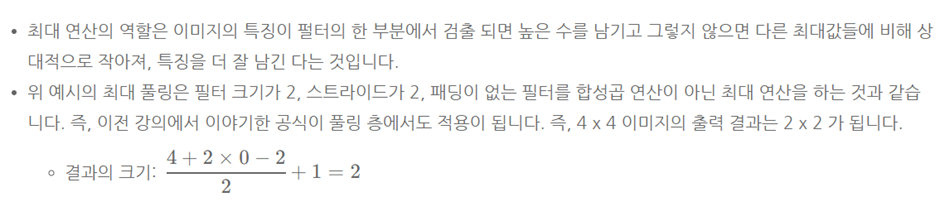 max pooling을 적용할 때는 대부분 padding은 사용하지 않습니다 (padding = 0)