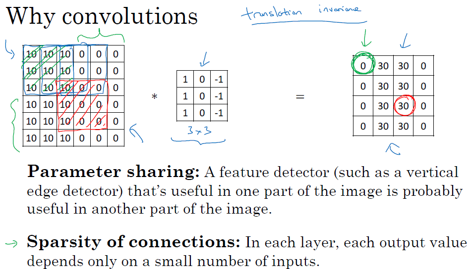 convolution neural network를 사용하는 두 가지 장점이 있습니다.