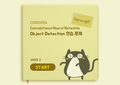 "Convolutional Neural Networks" (Andrew Ng)의 3주차 "Object Detection" 연습 문제에 대해서 정리해봤습니다.