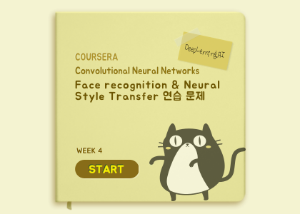"Convolutional Neural Networks" (Andrew Ng)의 4주차 "Face recognition & Neural Style Transfer"의 연습 문제 정리입니다.