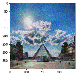 In this assignment, you are going to combine the Louvre museum in Paris (content image C) with the impressionist style of Claude Monet (content image S) to generate the following image:
