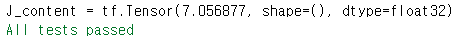 J_content = 1/(4 * n_H * n_W * n_C) * tf.reduce_sum(tf.square(tf.subtract(a_C_unrolled, a_G_unrolled)))