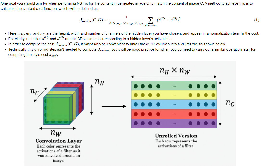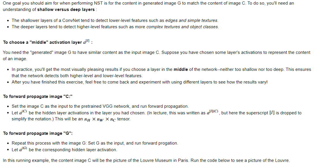 - First, you will build the content cost function 𝐽𝑐𝑜𝑛𝑡𝑒𝑛𝑡(𝐶,𝐺)