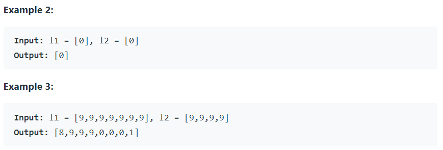 음수가 아닌 두 정수를 나타내는 두 개의 비어 있지 않은 리스트가 제공됩니다. 숫자는 역순으로 저장되며 각 노드에는 1개의 숫자가 포함됩니다. 두 숫자를 더하고 합계를 연결된 목록으로 반환합니다.