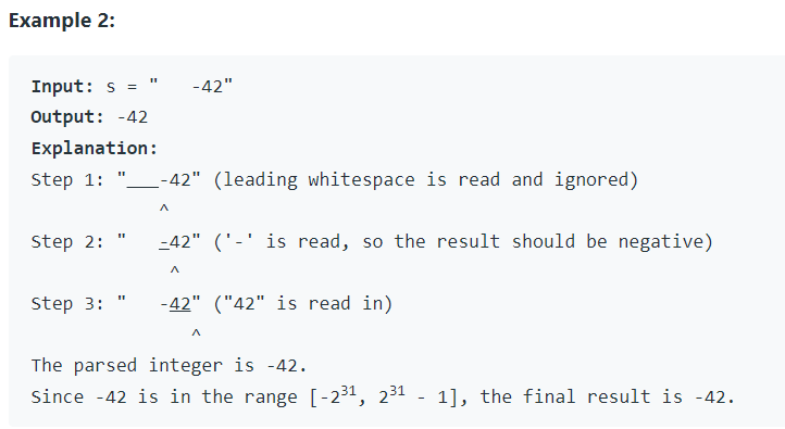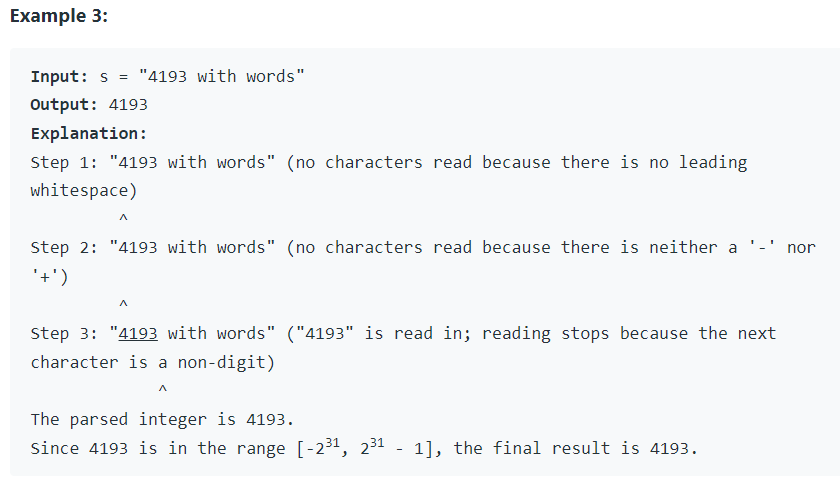 - Do not ignore any characters other than the leading whitespace or the rest of the string after the digits.
