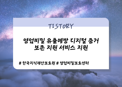오늘은 '핵심인력의 퇴사에 따른 기술유출 예방 및 피해 발생 시 증거 확보' 차원에서 한국지식재산보호원에서 지원하는 '영업비밀 유출예방 디지털 증거 보존 지원 서비스'에 대해서 알아봤습니다.