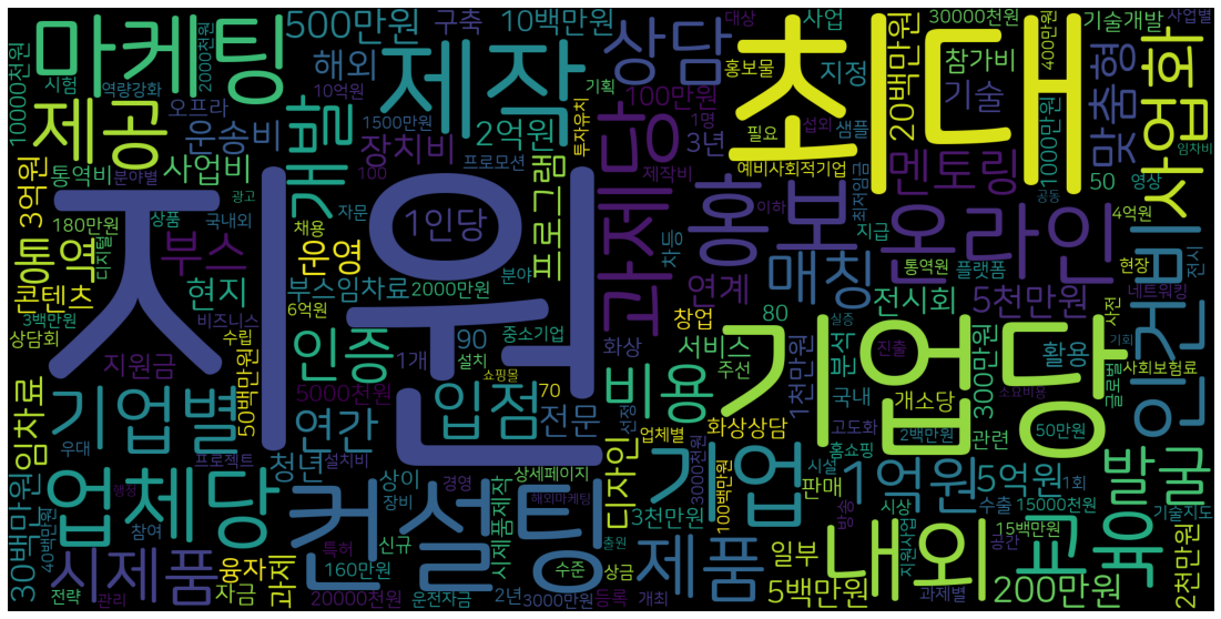 - 각 지원 대상과 지원 혜택별로 키워드 파악